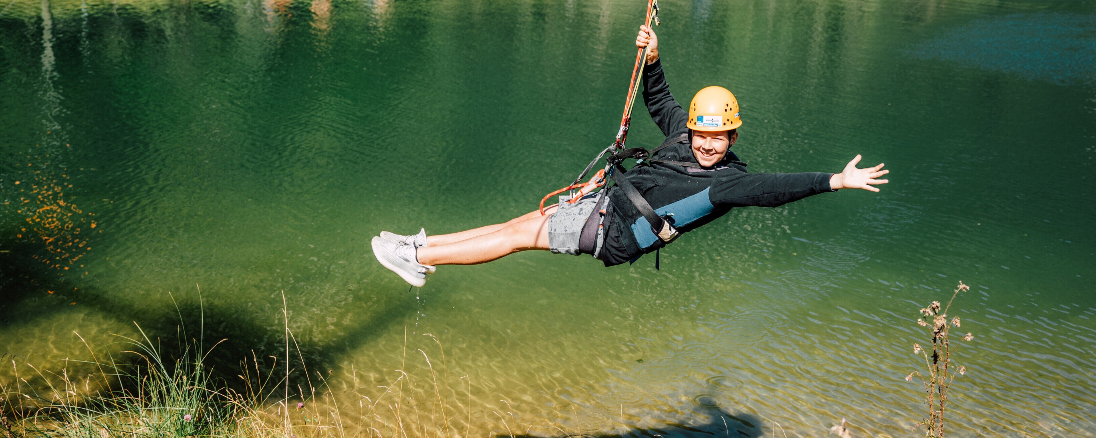 Outdoorparc Lungau: Nahe gelegener Erlebnisteich mit insgesamt 850 m Flying Fox, Teamparcours, Boulderwand, Kletterturm, Kajak, SUP, uvm. - für Schulgruppen bieten wir 50% Ermäßigung auf den Eintritt (ab einem Aufenthalt von 4 Nächten, mit Voranmeldung und nach Verfügbarkeit)